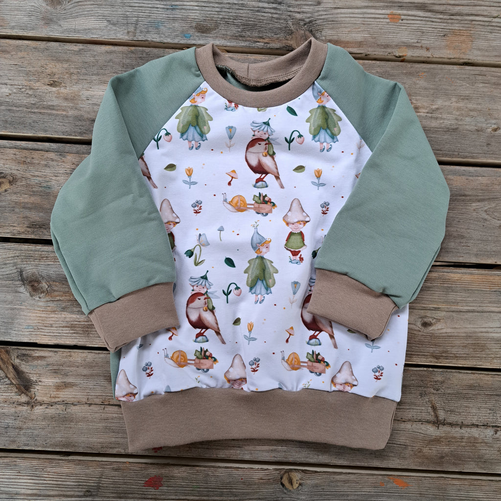 Felpa meravigliosa, comoda, taglia che va bene per tanto tempo (come per magia). Il cotone certificato GOTS è morbido e di alta qualità. L'amore del "fatto a mano" si sente ed è un onore poter vestire mia figlia con dei capi di così buona qualità. Questa fantasia poi è davvero magica!